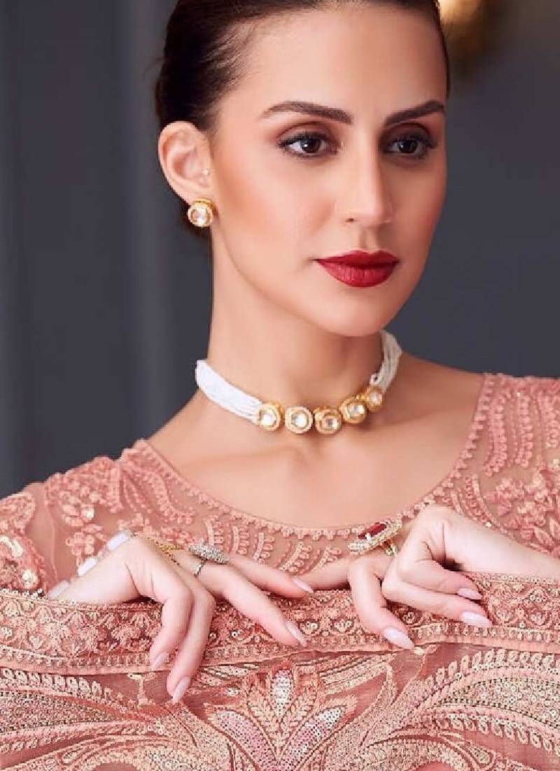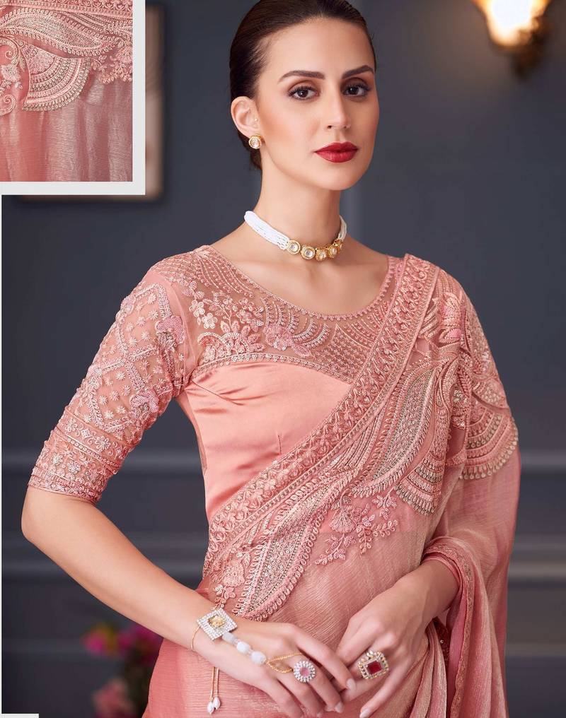| Product Name | Peach Silk Blend Embroidered Party Wear Sarees | |
