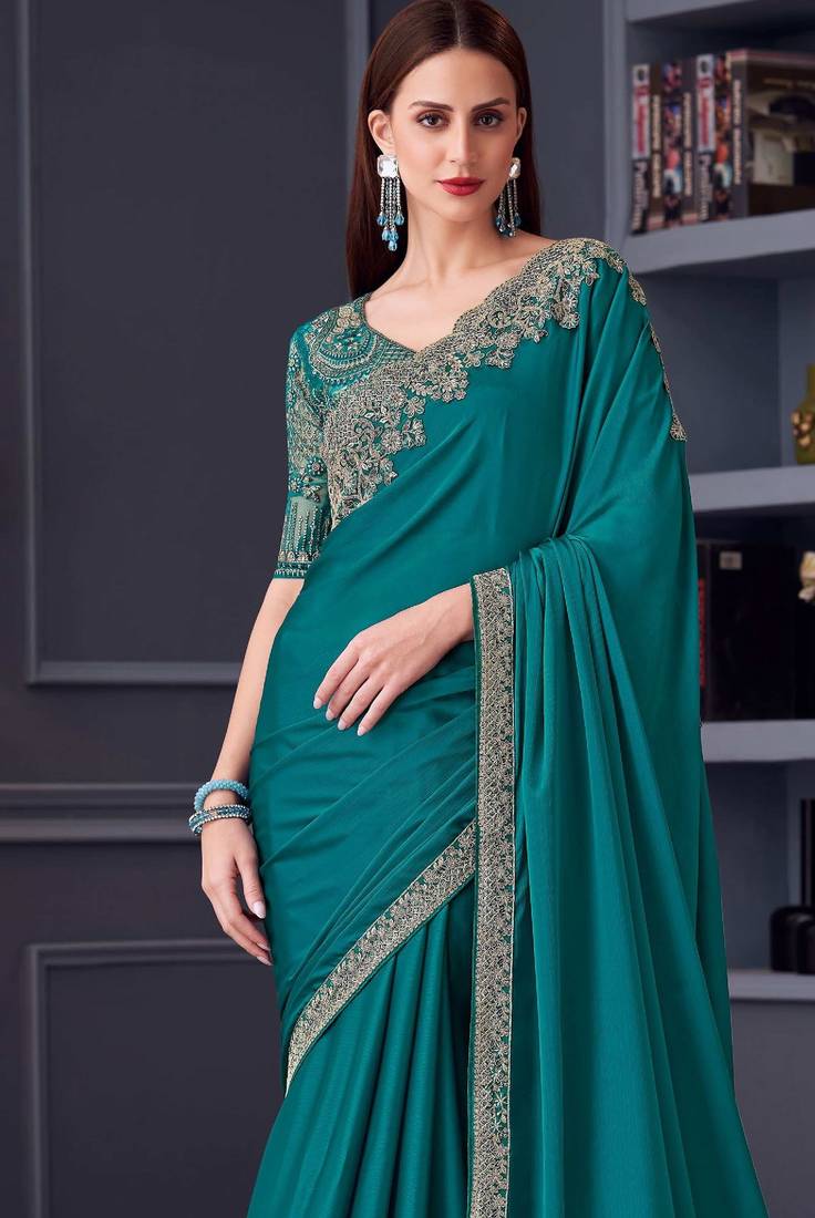 | Product Description | Turquoise Green Silk Embroidered Ethnic Sarees.This Saree Makes You Awesome And Gives You Most Stylish & Trendy Look.This Saree Is Perfect For Party Wear,Office Wear,Weeding Wear And Festive Wear And Also Makes You Star Of Party |