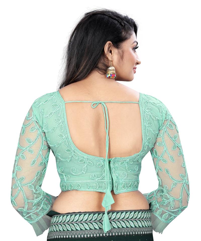 Light rama nylon net full cording embroidery work readymade blouse