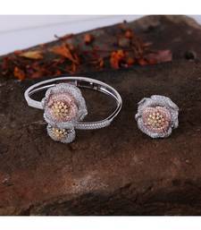 | Product Name | Cubic Zirconia Golden Silver Rose Gold Flower Design Bracelet Ring Combo | |
