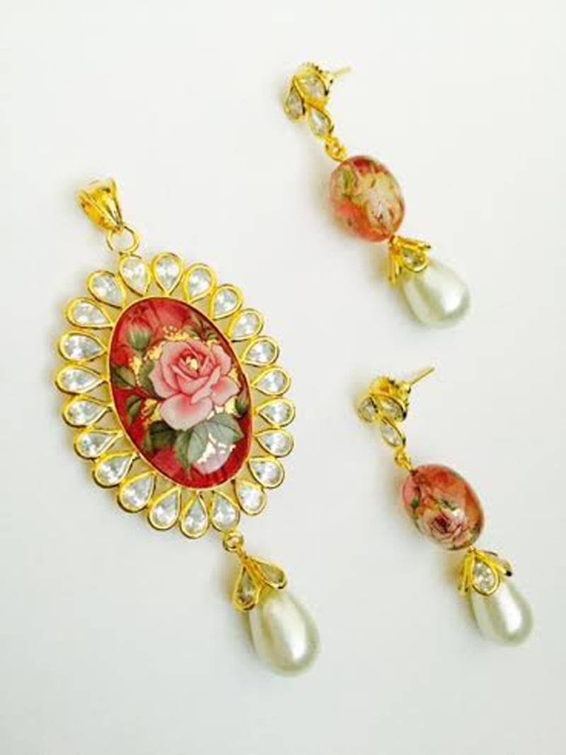 | Product Name | Peech Chinese Painting Rosecut Stone Pendant With Pearl Drop | |