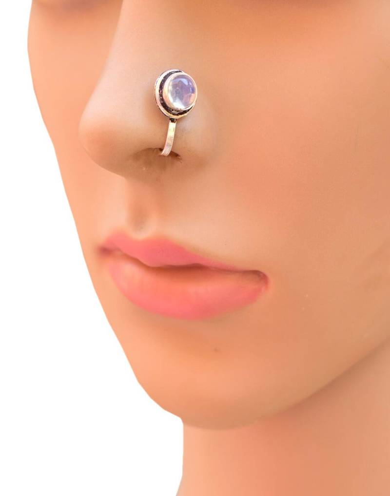 Oxidized metal nose pin white bead 1