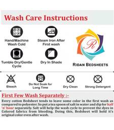 | Product Description | Ridan Brings You Pure Cotton Multicolour Print King Size Double Bed Sheets With Pillow Cover. It Will Add More Elegance To Your Lovely Bedroom. The Complimentary Pillow Covers Further Add To Its Appeal With Ethnic Print And Bright Colours.Size Of Bed Sheet 100 Inches By 108 Inches And Size Of Pillow 17 Inches By 27 Inches . Hand Wash , Dry In Shade , Machine Wash |