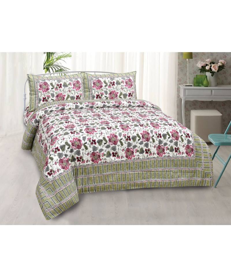 Multicolor cotton printed king size double bed sheet with pillow cover
