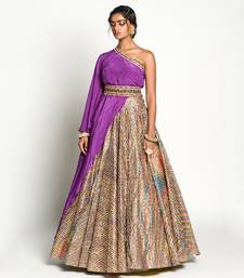 | Product Description | Featuring A Chanderi Lehenga Embroidred With Multicolored Threads Paired With A Contrasting One Shoulder Cape And Cut Daana, Dabka And Thread Work Belt.