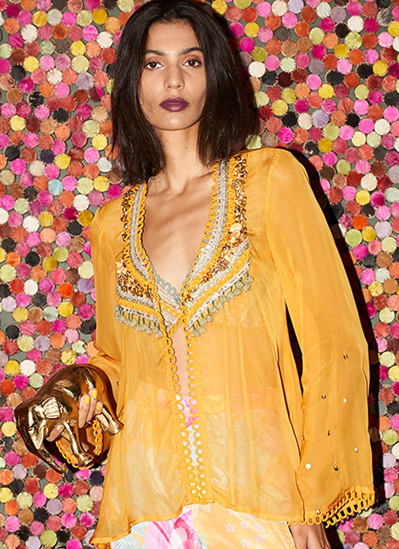 | Product Description | A Radiant Yellow Gharara Set Crafted In Flowy Organza And Detailed With Intricate Embroidery For A Festive Finish. The Flared Silhouette And Delicate Fabric Create A Graceful Movement, Making It Ideal For Mehendi Functions, Wedding Festivities, And Celebratory Gatherings.