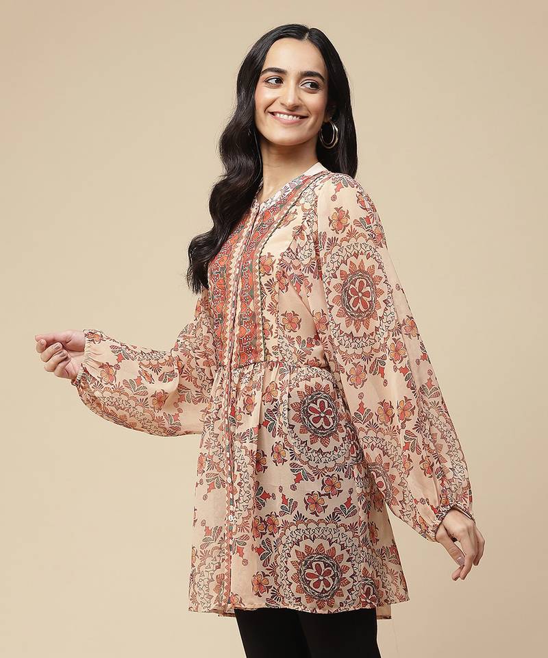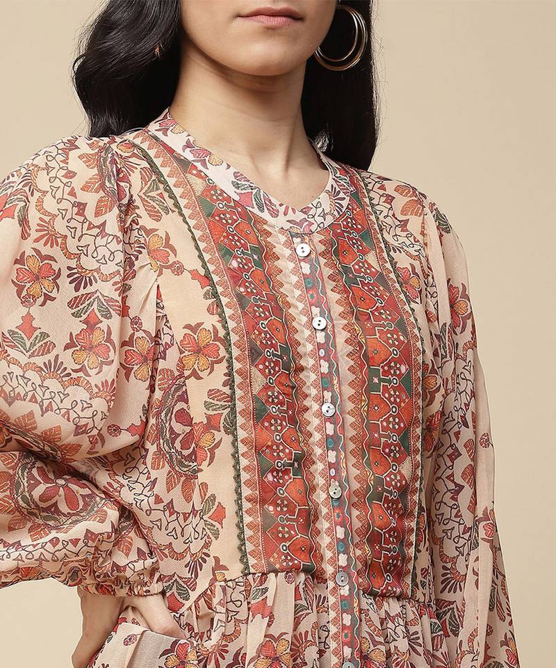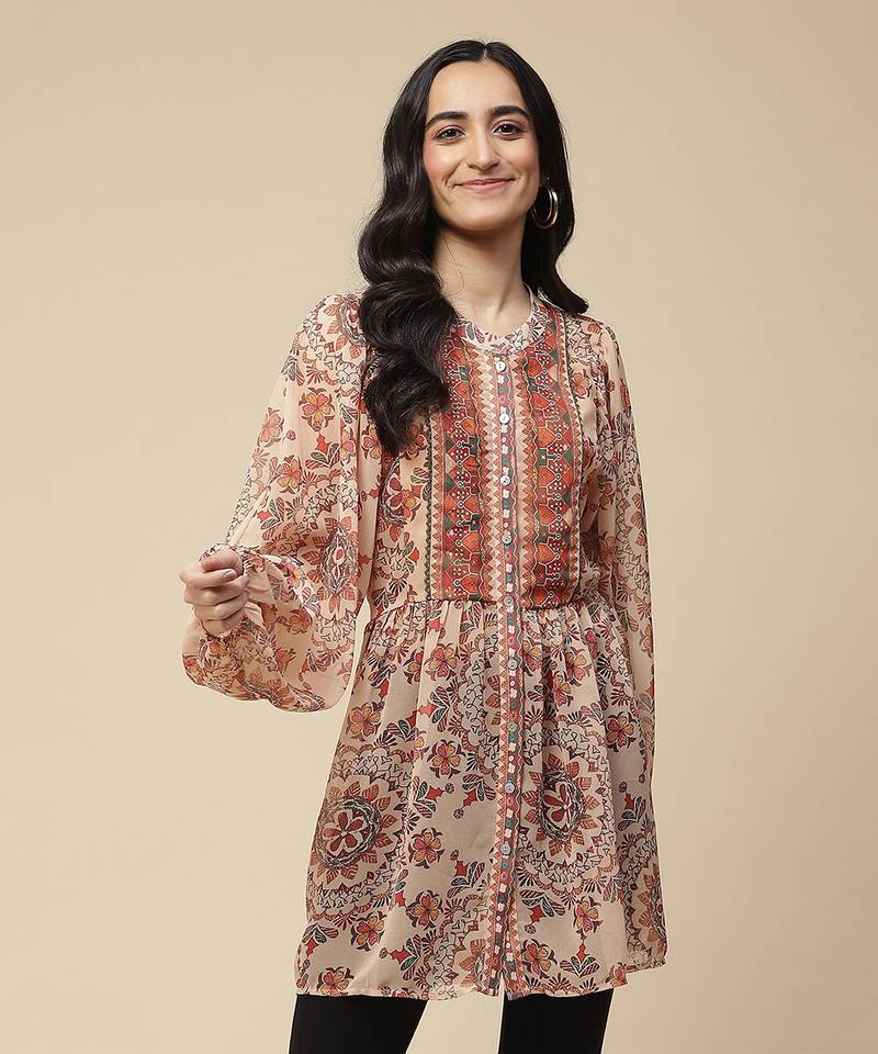 | Product Description | Featuring Beige Printed Kurti With Camisole |