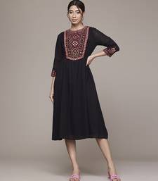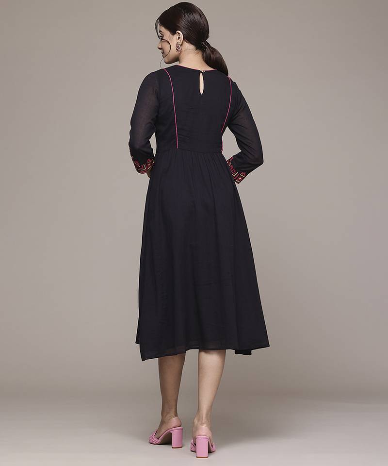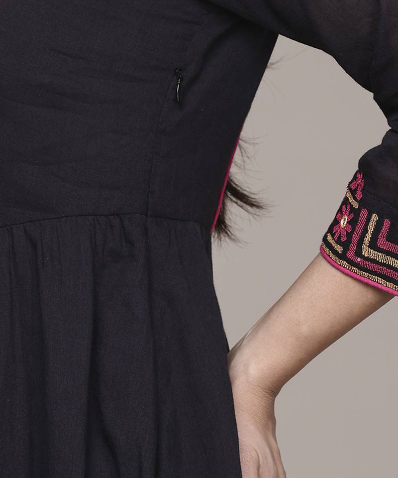 Black cotton dress with embroidered work design