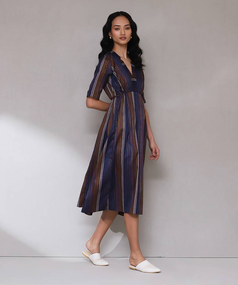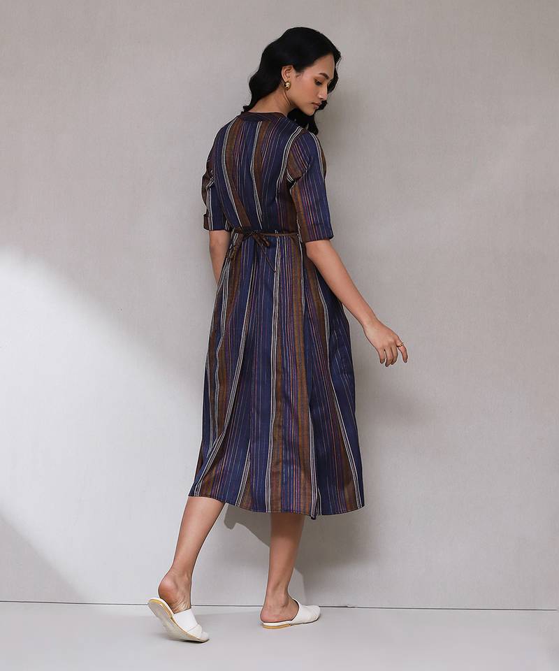 Dark blue yarn dyed long dress