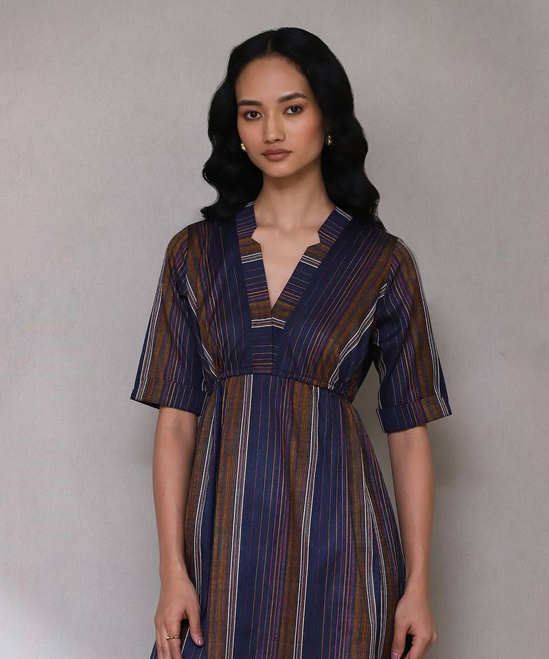| Product Description | Featuring Dark Blue Yarn Dyed Long Dress. |