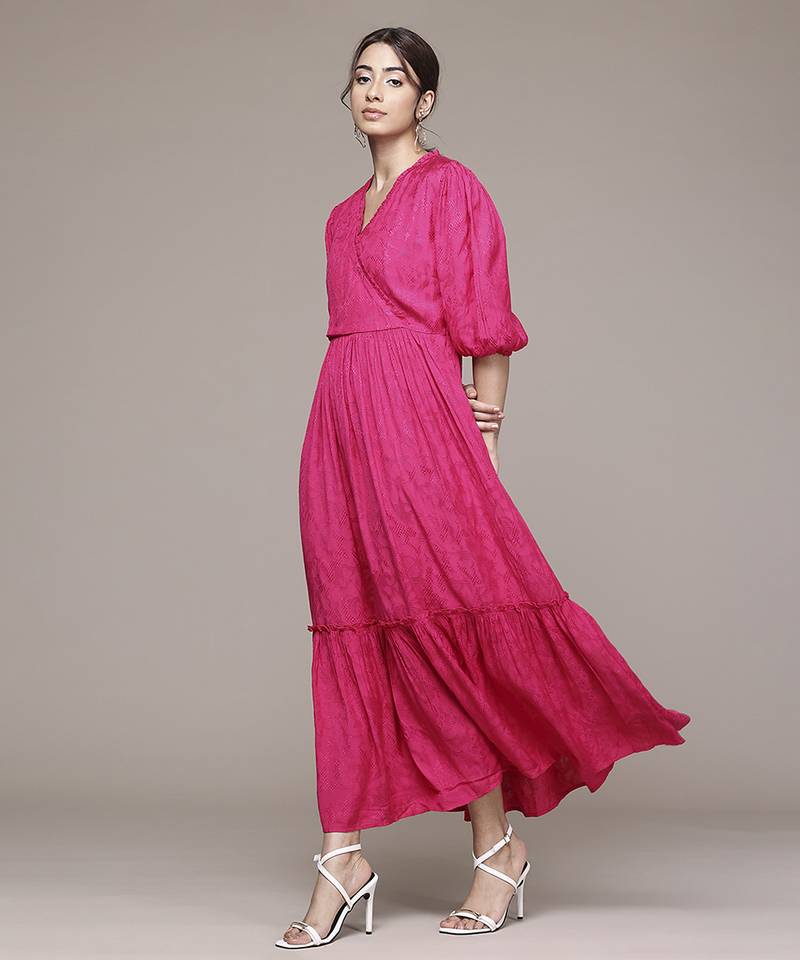 | Product Description | Crafted In Viscose, This Fuchsia Dress Features A Classic Plain Design With Elbow Sleeves. The Soft Texture And Simple Style Provide A Neat Appearance And Comfort. Suitable For Casual Wear, Festive Occasions, And Informal Celebrations. |