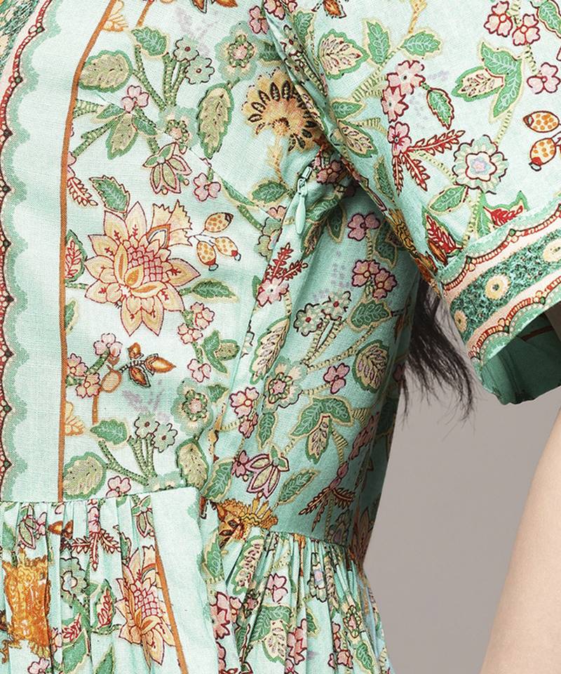 Green rayon dress with printed work design