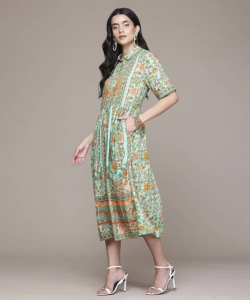 | Product Description | This Green Rayon Dress Features Printed Work On Soft And Breathable Fabric. The Rayon Material Ensures A Smooth Drape And Comfortable Feel For Casual Outings And Festive Gatherings. Half Sleeves Provide A Balanced And Relaxed Silhouette. The Printed Design Adds Visual Detail While Maintaining A Clean And Consistent Appearance. The Stitched Construction Ensures A Ready To Wear Form. The Green Shade Supports Versatile Styling With Minimal Accessories, Making It Suitable For Everyday And Occasion Wear. |