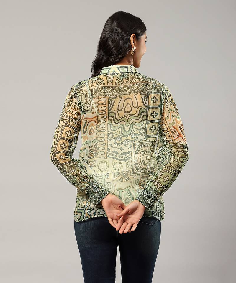Green printed shirt with inner by label