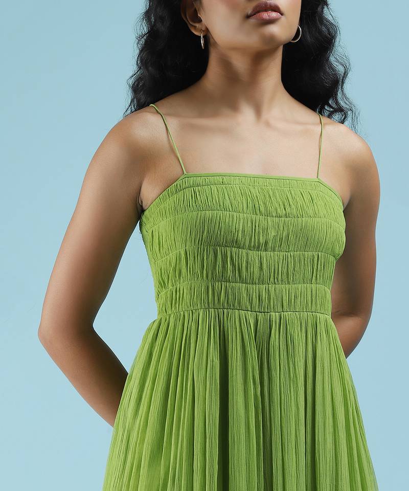 | Product Description | Strappy Solid Pleated Long Dress. |