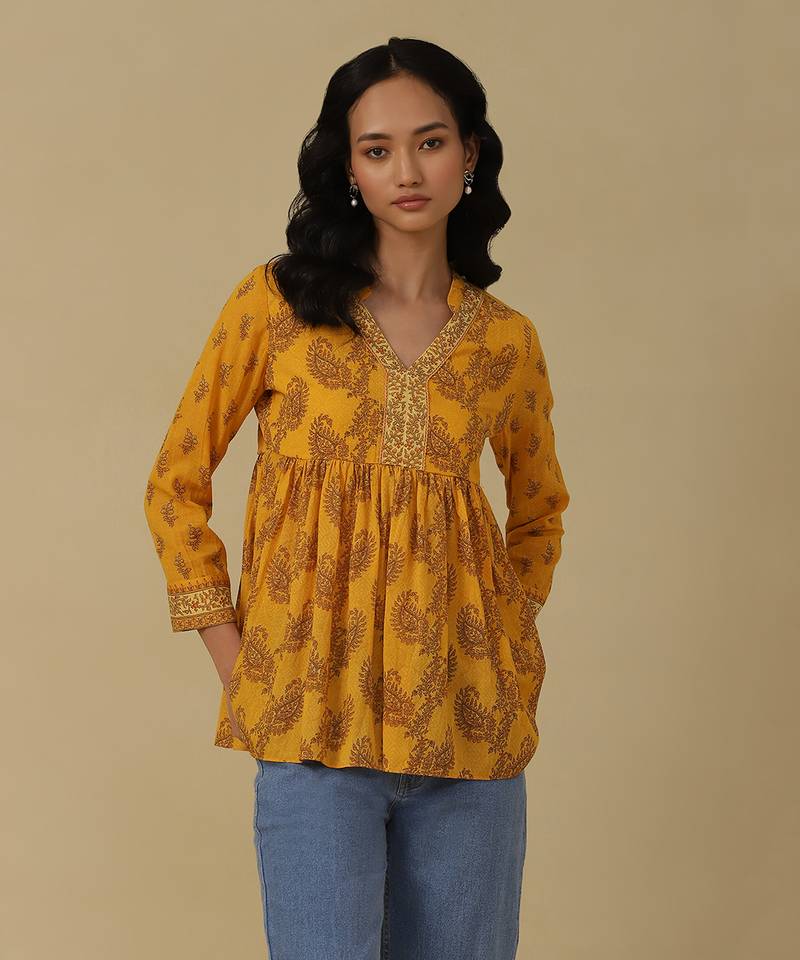 | Product Name | Marigold Yellow Paisley Print Kurti With Camisole | |
