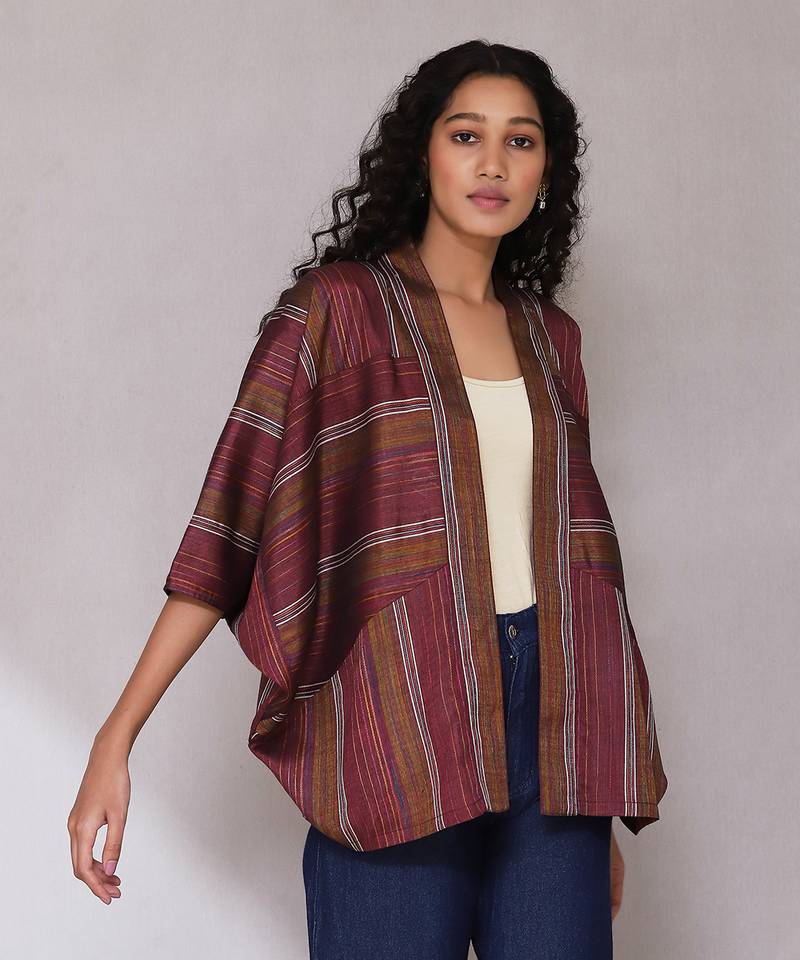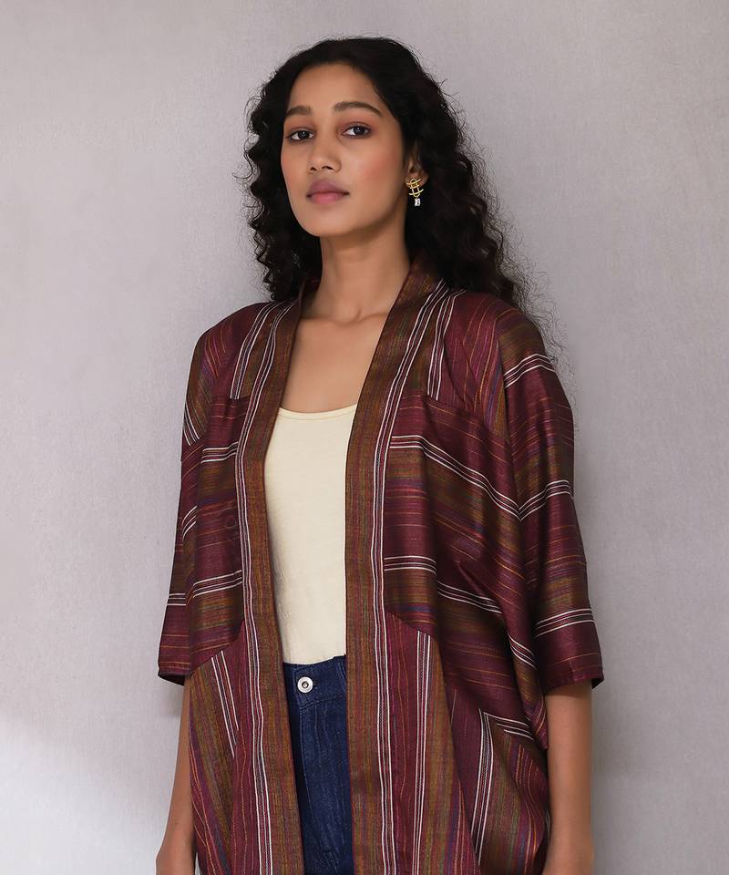 | Product Description | Featuring Maroon Yarn Dyed Shrug. |