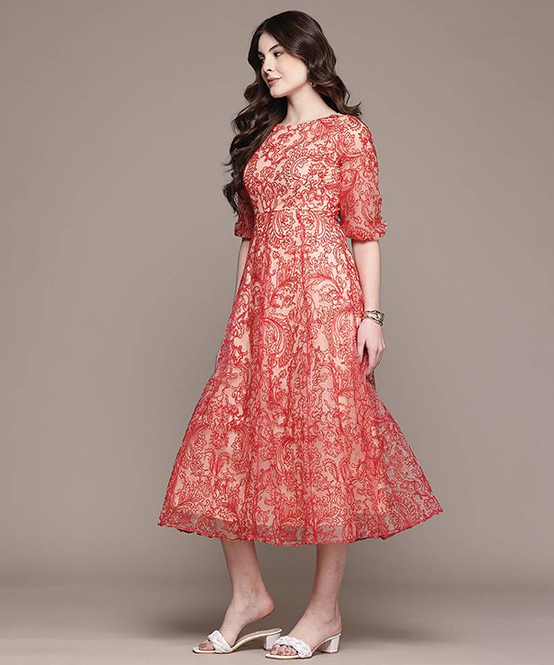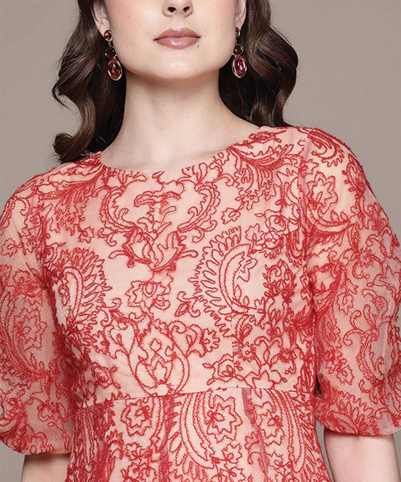 | Product Description | This Red Printed Tulle Dress Features A Soft, Layered Texture With Delicate Patterns. The Lightweight Fabric Adds Volume And Movement, Creating A Dreamy Silhouette. Perfect For Special Occasions, It Offers A Romantic And Stylish Look With A Modern Twist.