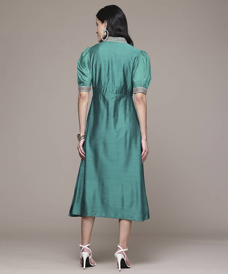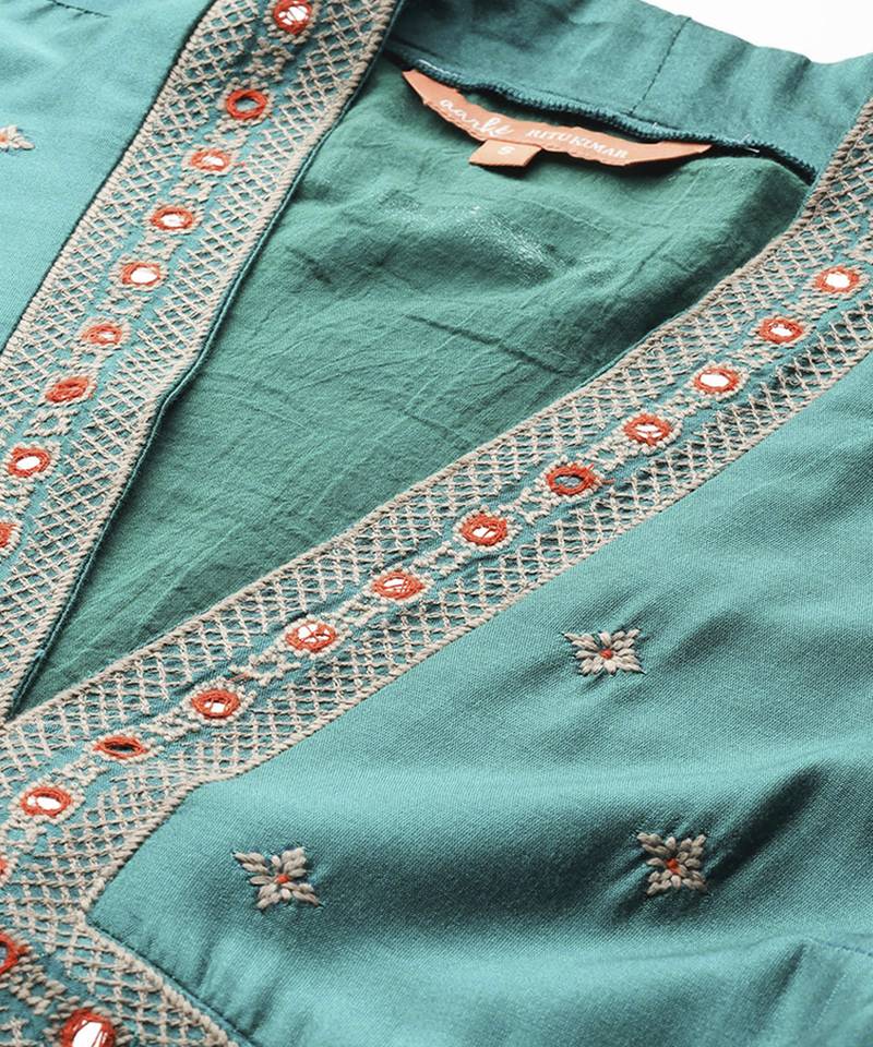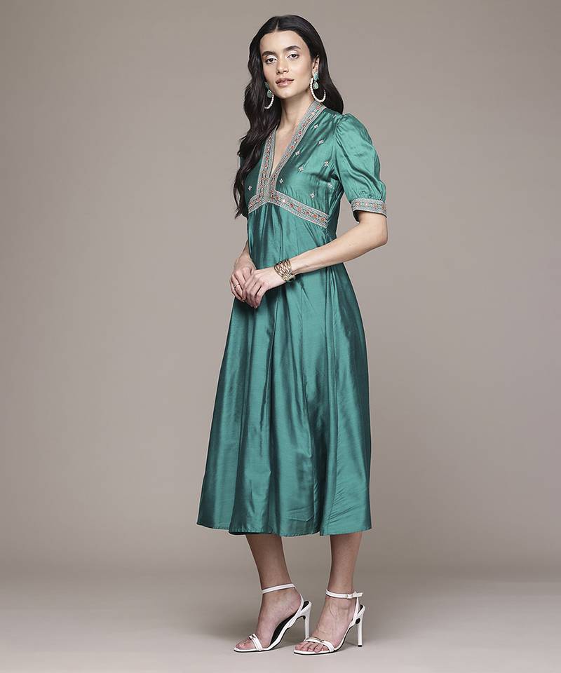 Teal viscose dress with embroidered work design