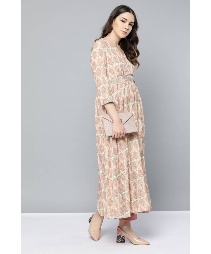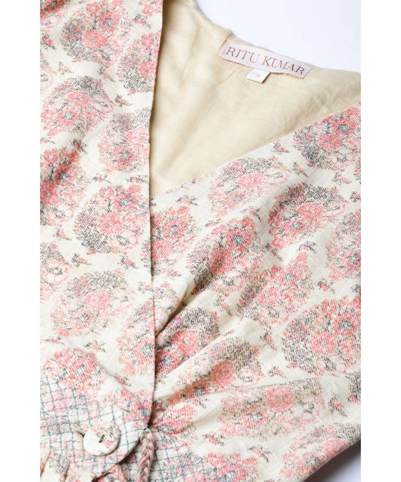 Ritu kumar off white v neck half sleeve long printed wrap kurta