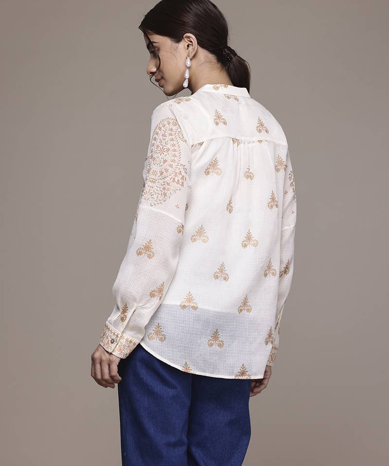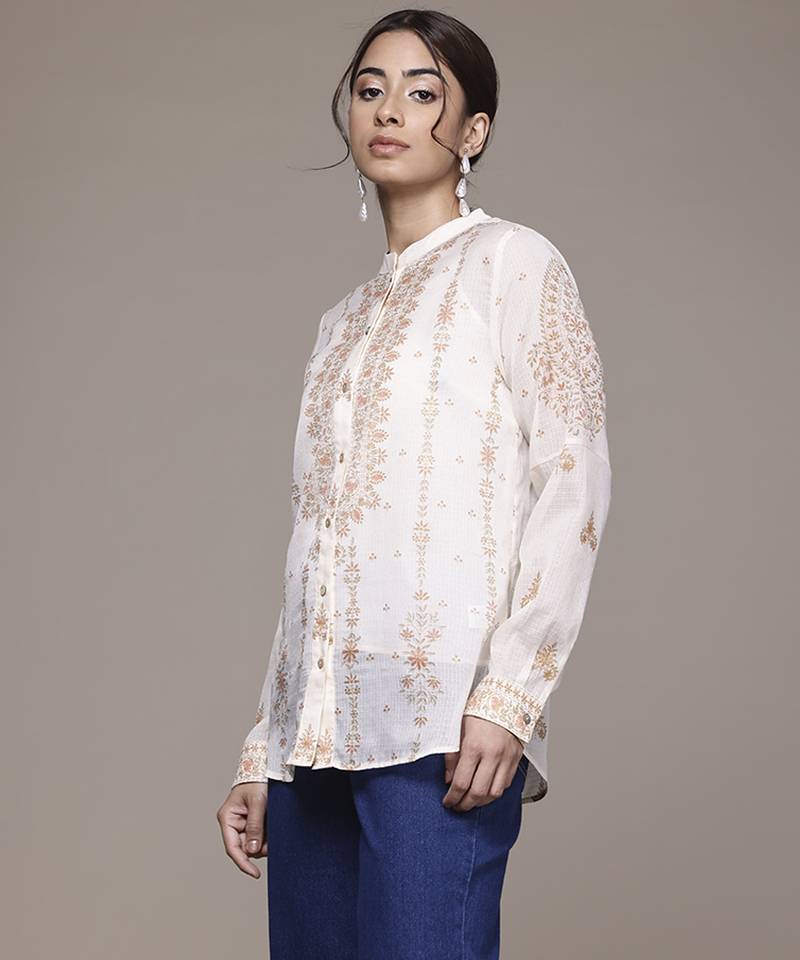 | Product Description | This White Cotton Shirt Features Printed Work On Soft And Breathable Fabric. The Cotton Material Ensures Comfort And Ease For Casual Outings And Festive Occasions. Full Sleeves Provide A Structured And Balanced Silhouette. The Printed Design Adds Visual Detail While Maintaining A Clean And Consistent Appearance. The Stitched Construction Ensures A Ready To Wear Form. The White Shade Supports Versatile Styling With Different Bottoms, Making It Suitable For Everyday And Occasion Wear. |