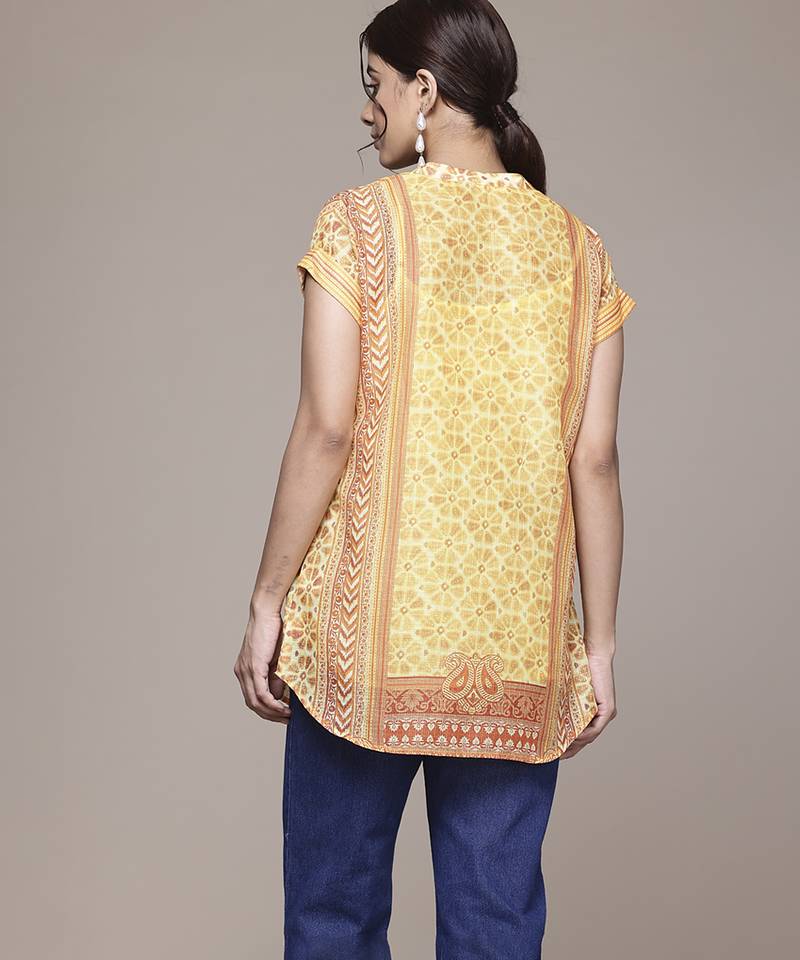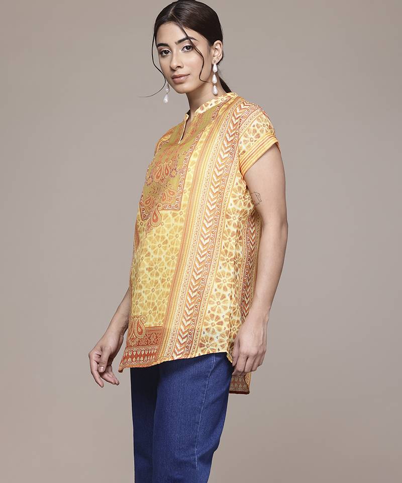 Yellow cotton top with printed work design