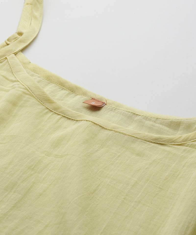 | Product Description | This Yellow Cotton Top Features Printed Work That Adds Visual Detail To A Soft And Breathable Fabric. The Cotton Material Ensures Comfort For All Day Wear, Making It Suitable For Casual Outings And Everyday Use. The Half Sleeves Provide A Balanced And Relaxed Fit. The Printed Design Enhances The Overall Structure While Maintaining A Clean Appearance. It Comes With A Matching Camisole For Added Coverage And Layering. The Stitched Construction Ensures A Ready To Wear Form. The Yellow Color Brings Brightness And Pairs Well With Various Bottom Styles For Versatile Use. |