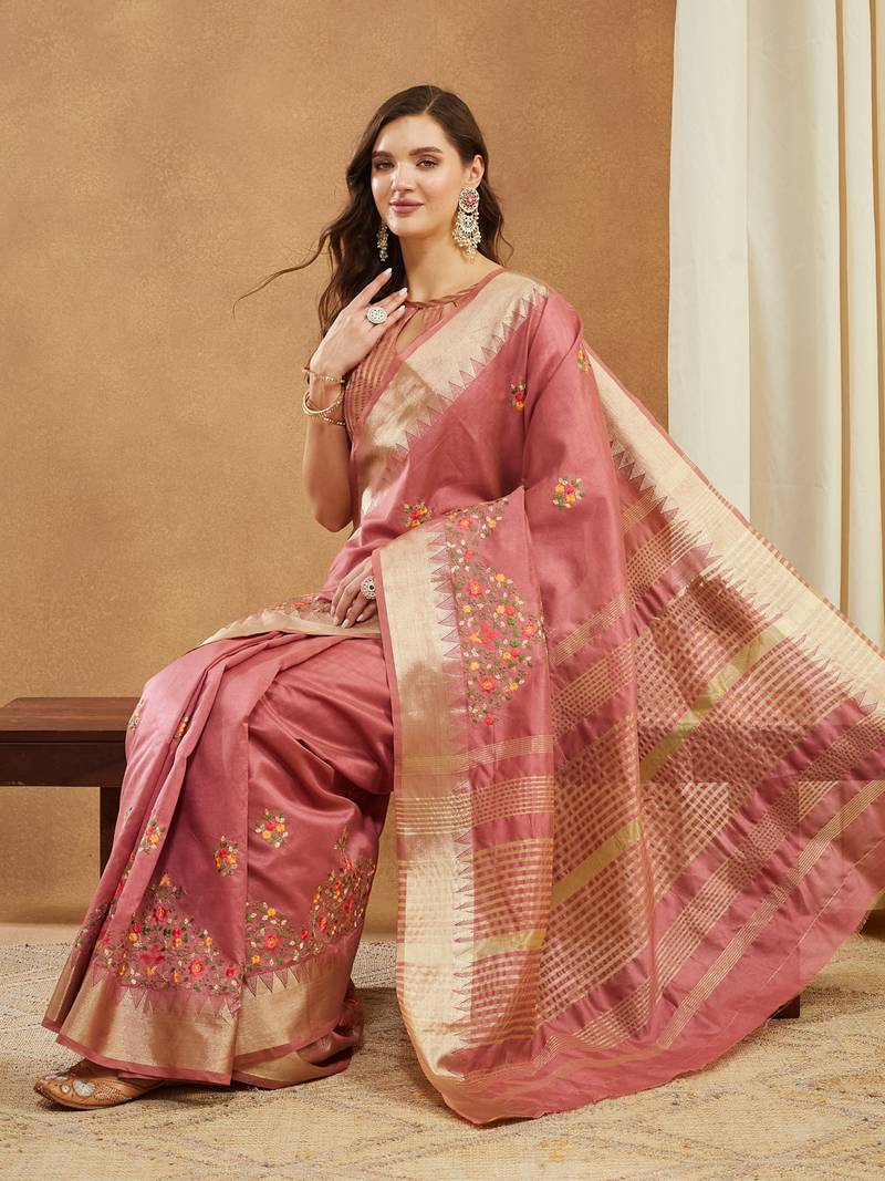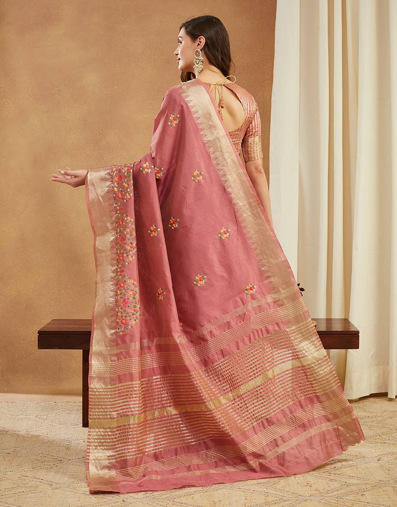 | Product Name | Pink Assam Cotton Silk Saree With Multicolor Embroidery | |