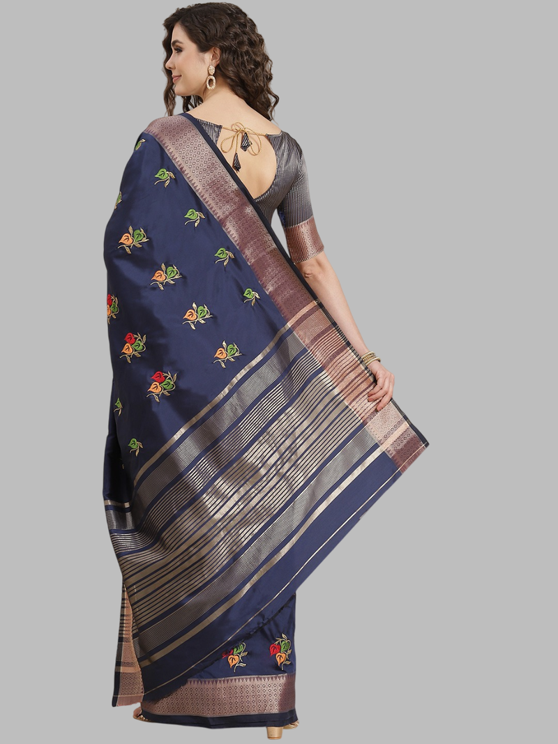 | Product Name | Blue Soft Cotton Silk With Colourful Thread Embroidery Saree With Blouse | |