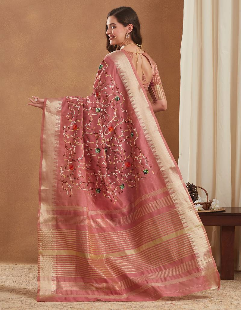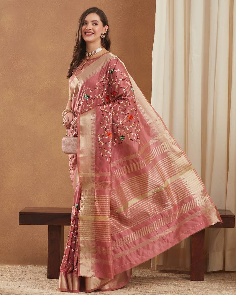 | Product Name | Assam Cotton Art Silk Embroidered Zari Temple Border Saree With Blouse. | |
