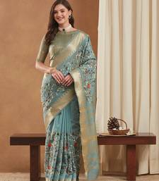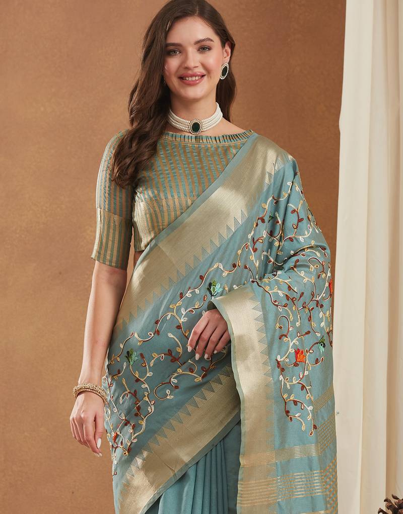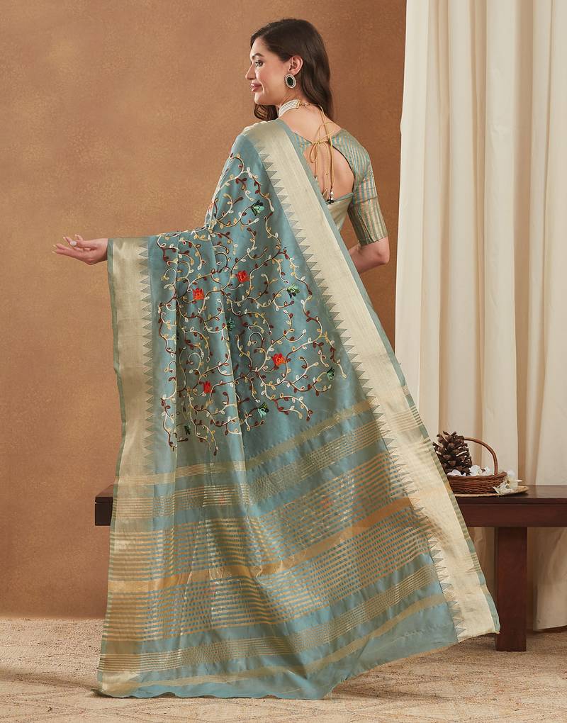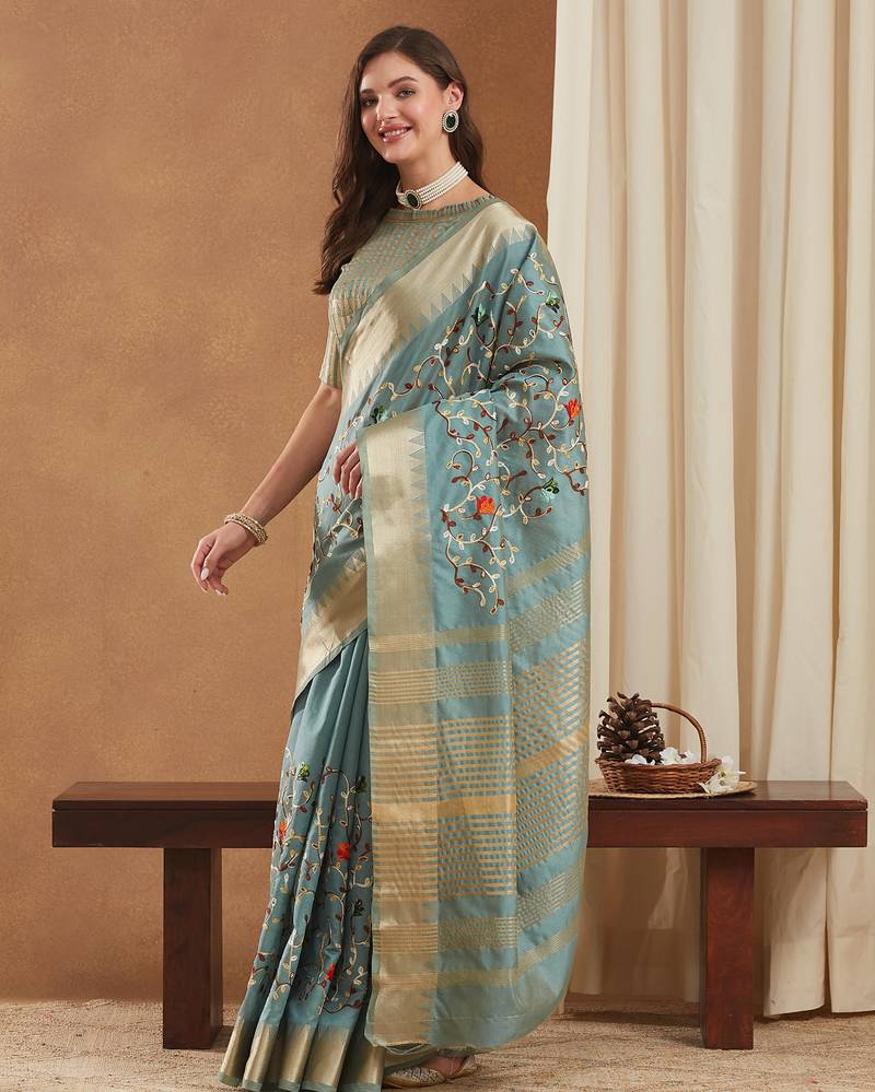 | • | Saree | : | Color- Turquoise / Fabric- Cotton |