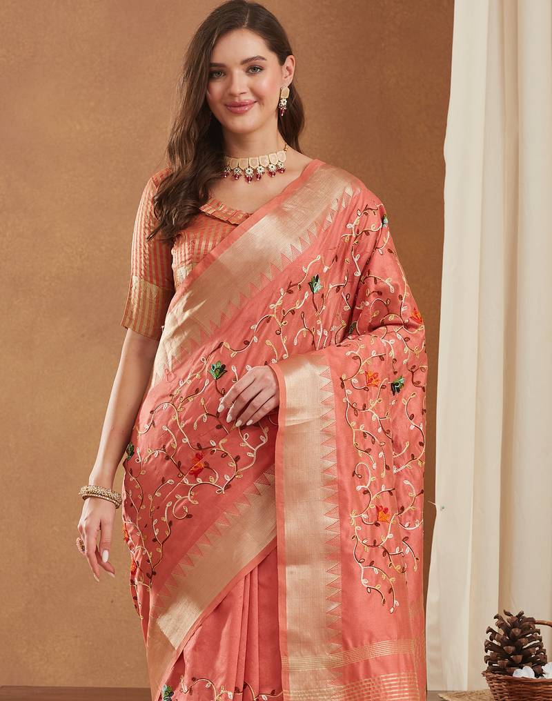 | • | Blouse | : | Color- Peach / Fabric- Art Silk |