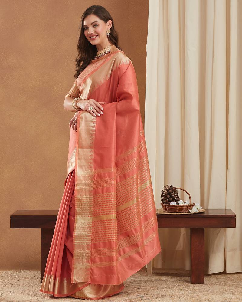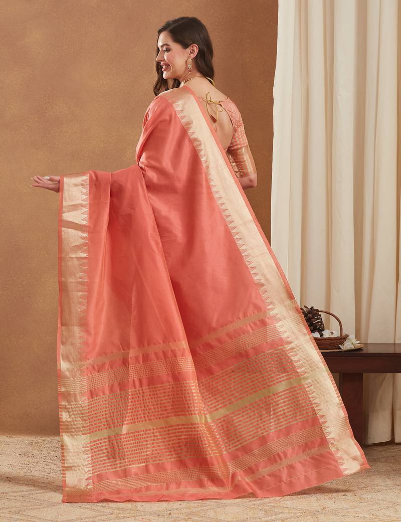 | Product Description | Crafted From Premium Assam Silk Fabric, This Saree Showcases A Rich Printed Design Paired With An Elegant Golden Zari Temple Contrast Border That Adds A Touch Of Traditional Grandeur. The Luxurious Texture Of Assam Silk Combined With The Vibrant Pattern Ensures A Sophisticated Festive Look. It Comes With A Matching 0.8 Meter Unstitched Blouse Piece In Assam Silk, Allowing You To Tailor It Perfectly To Your Preferred Style. This Saree Delivers A Graceful Drape And Timeless Aesthetic Ideal For Every Special Occasion. |