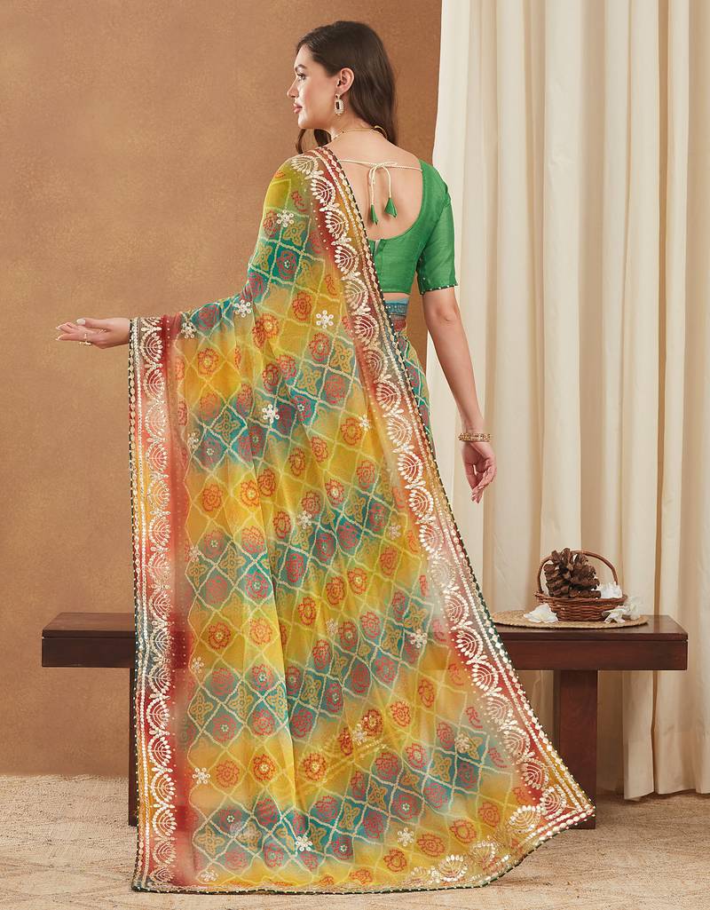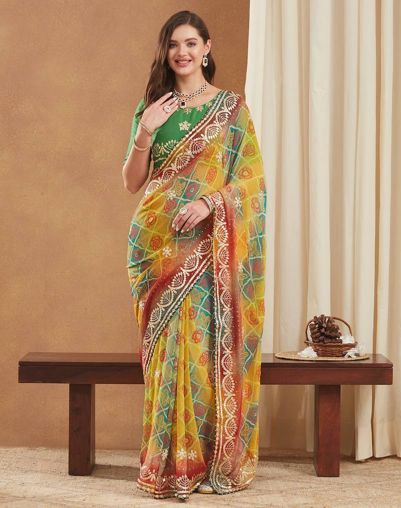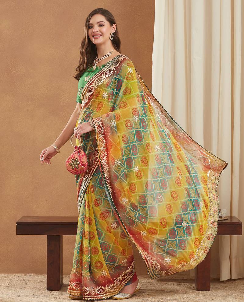Exclusive bandhej georgette saree with sequins & gotapati work blouse
