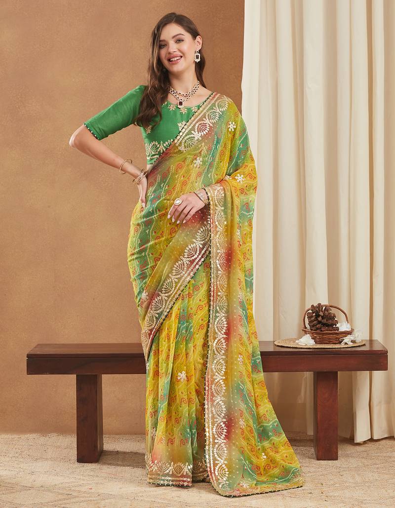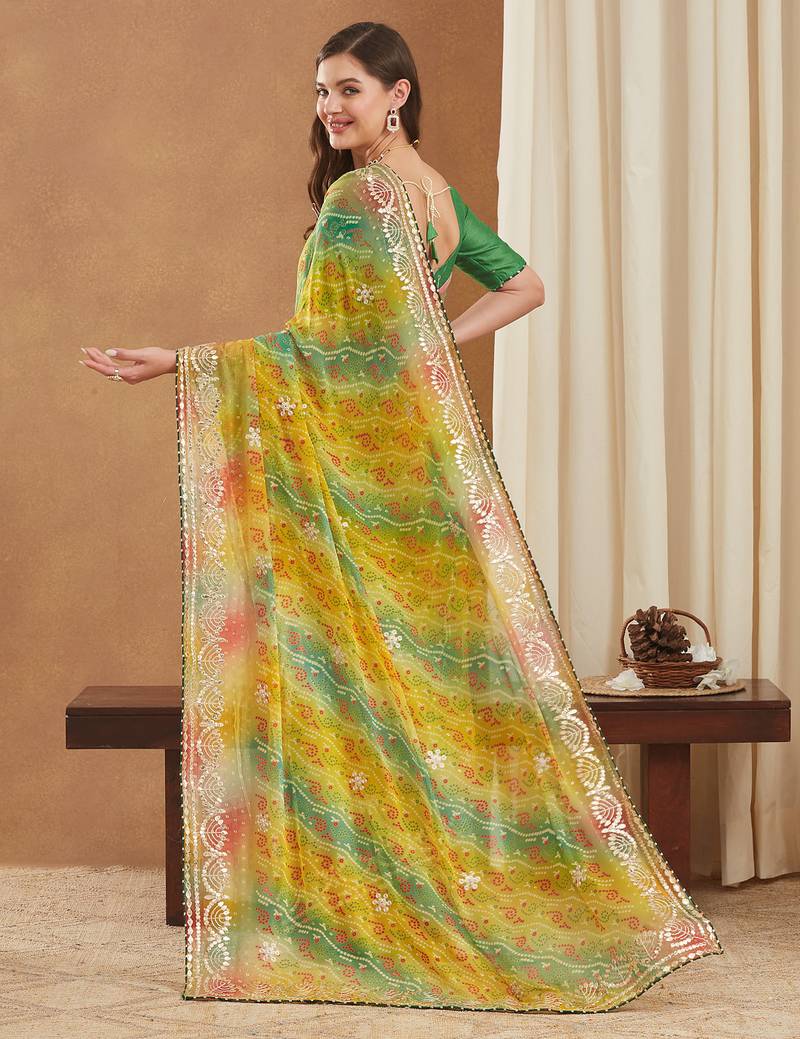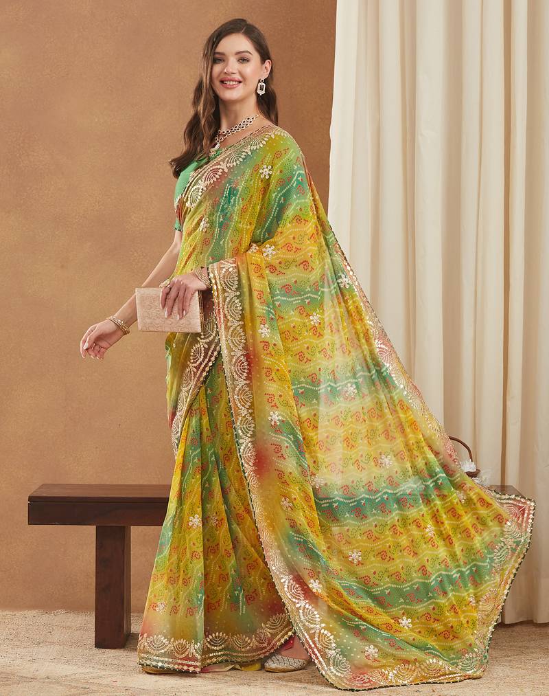Exclusive bandhej georgette saree with sequins & gotapati work blouse