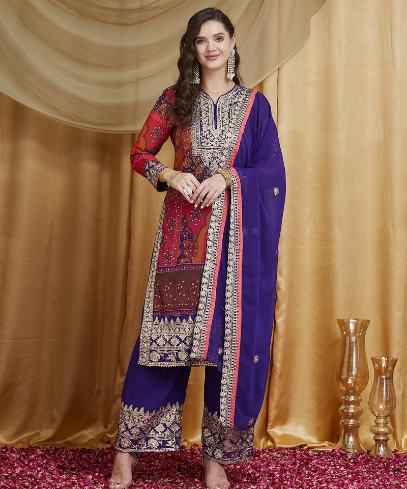 Riva enterprise women's faux georgette fabric zari embroidery kurtaset with dupatta stitched