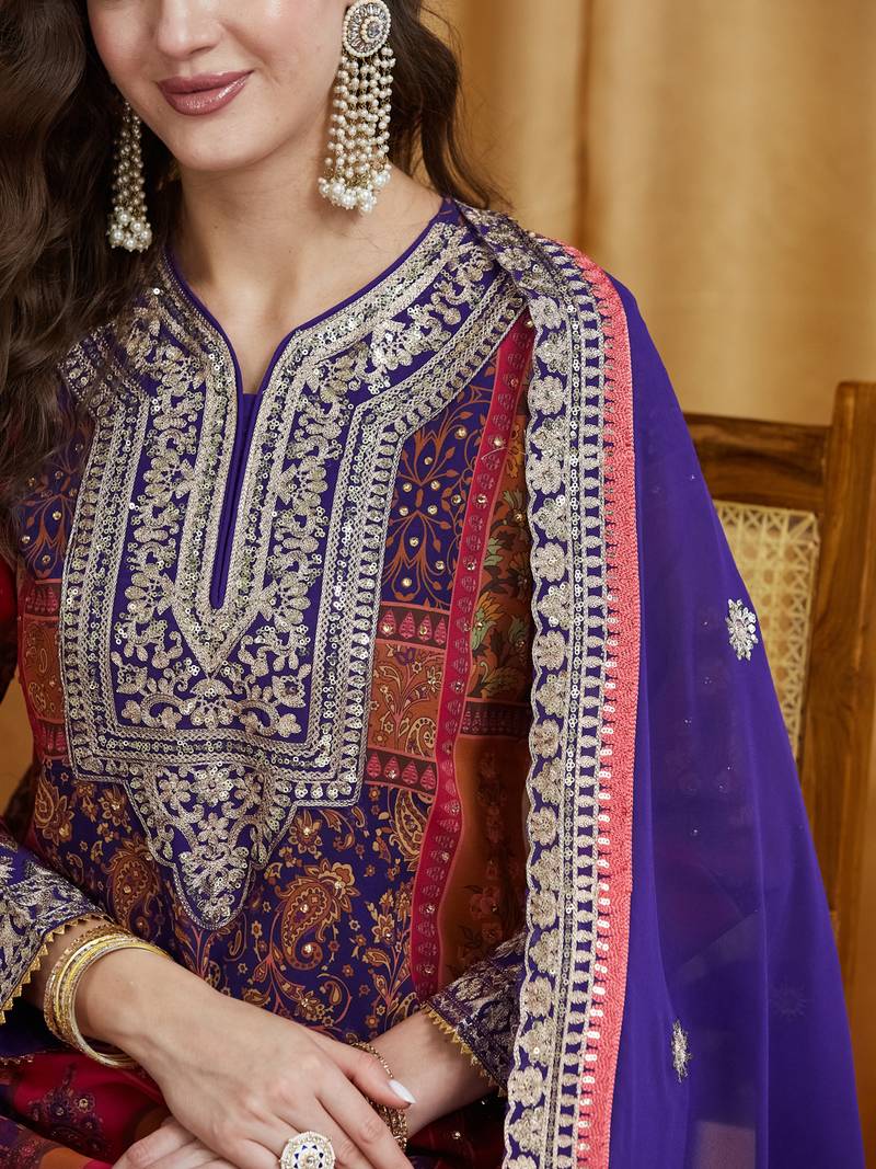 | • | Dupatta | : | Color- Purple / Fabric- Georgette |