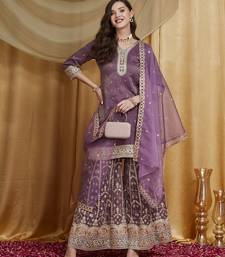 Riva enterprise women's festive wear lavender kurta set with palazzo and embroidered dupatta stitched