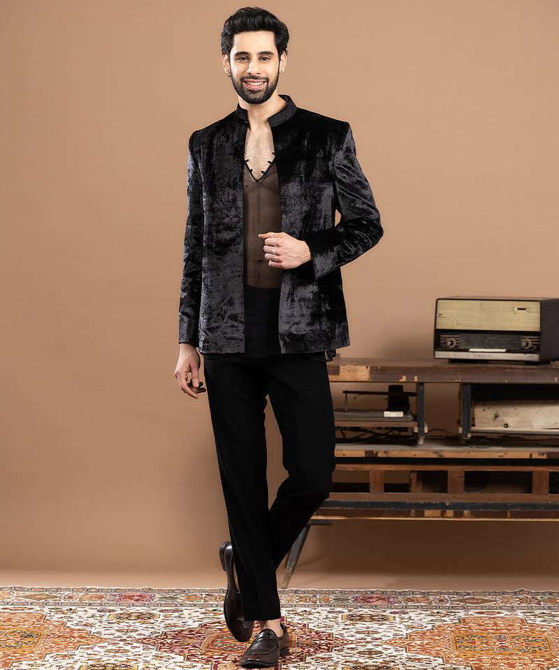 | Product Description | Black Velvet Bandhgala Set Crafted For Timeless Elegance And Royal Charm. Featuring A Rich Velvet Fabric With A Structured Silhouette, It Offers A Luxurious Feel And Sharp Fit. Ideal For Weddings, Festive Celebrations, And Evening Events, This Classic Ensemble Delivers Sophistication, Confidence, And Refined Traditional Style.