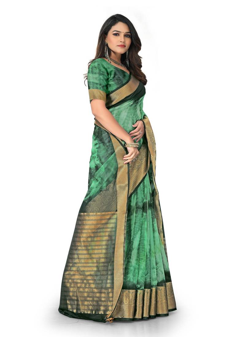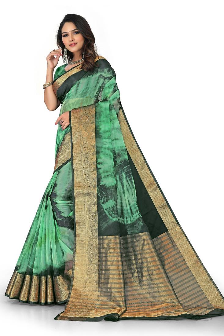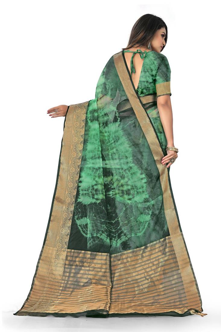 | Product Name | Green Shibori Print Organza Womens Saree With Blouse | |