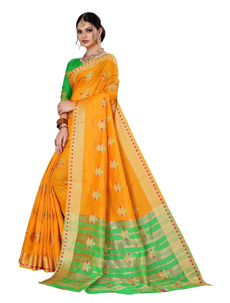 | Product Description | Woven Banarasi Cotton Silk Saree. Ready To Wear On Any Occasion Or Season. |
