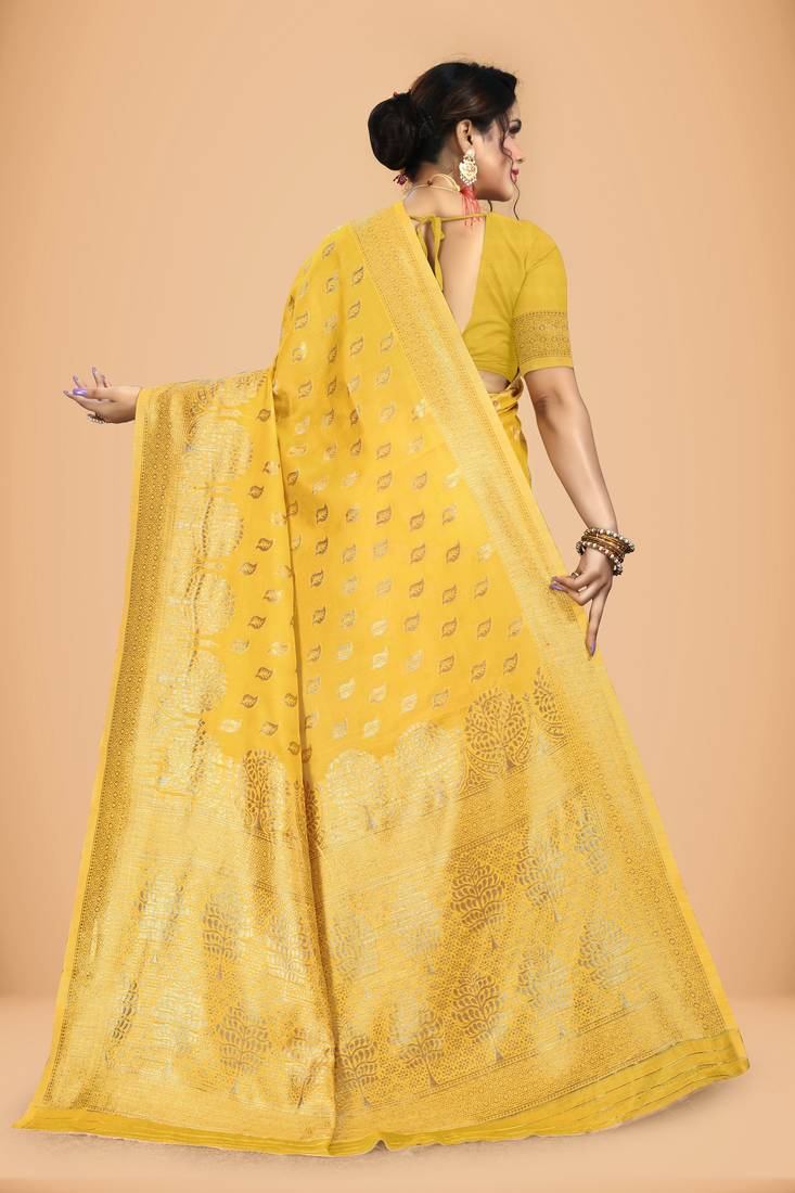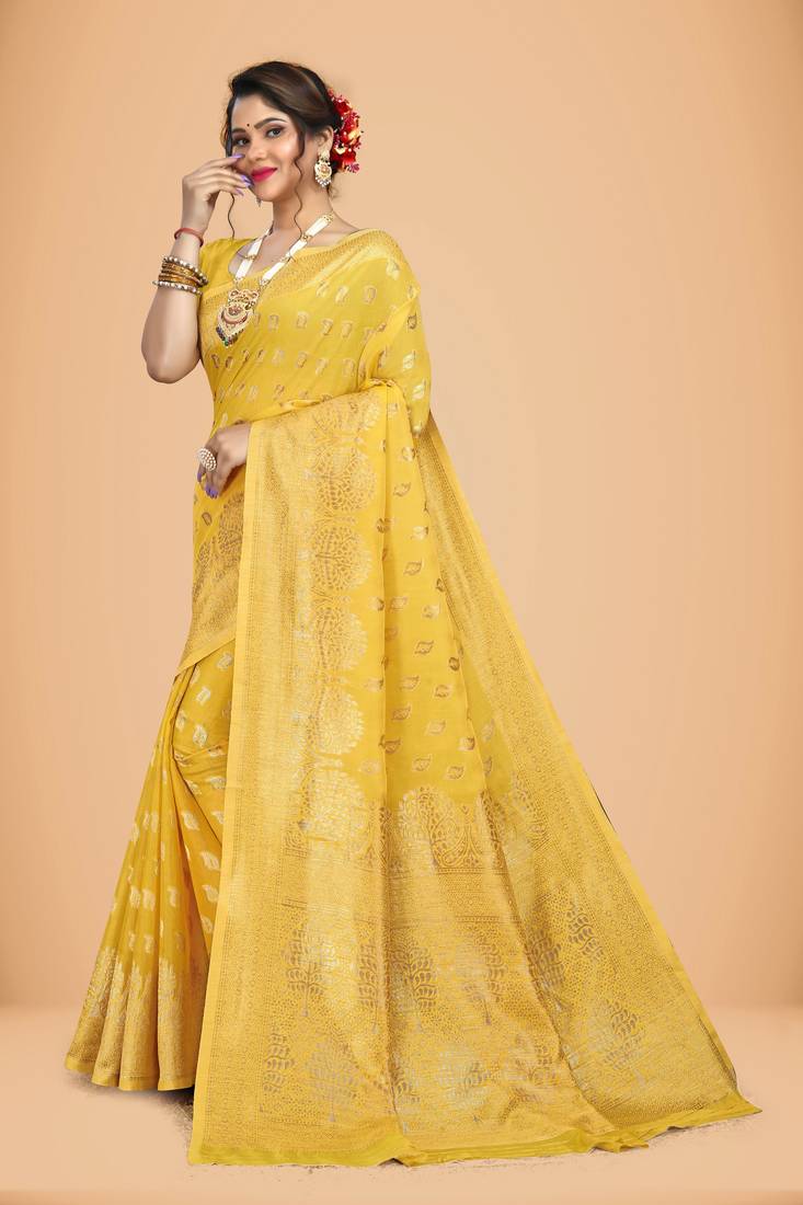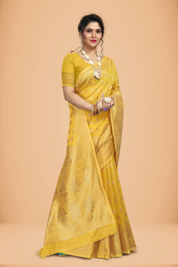 | Product Name | Yellow Woven Cotton Blend Womens Saree With Blouse | |