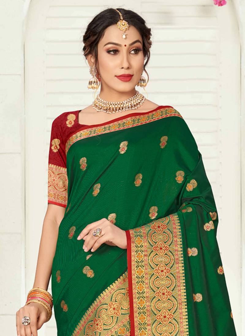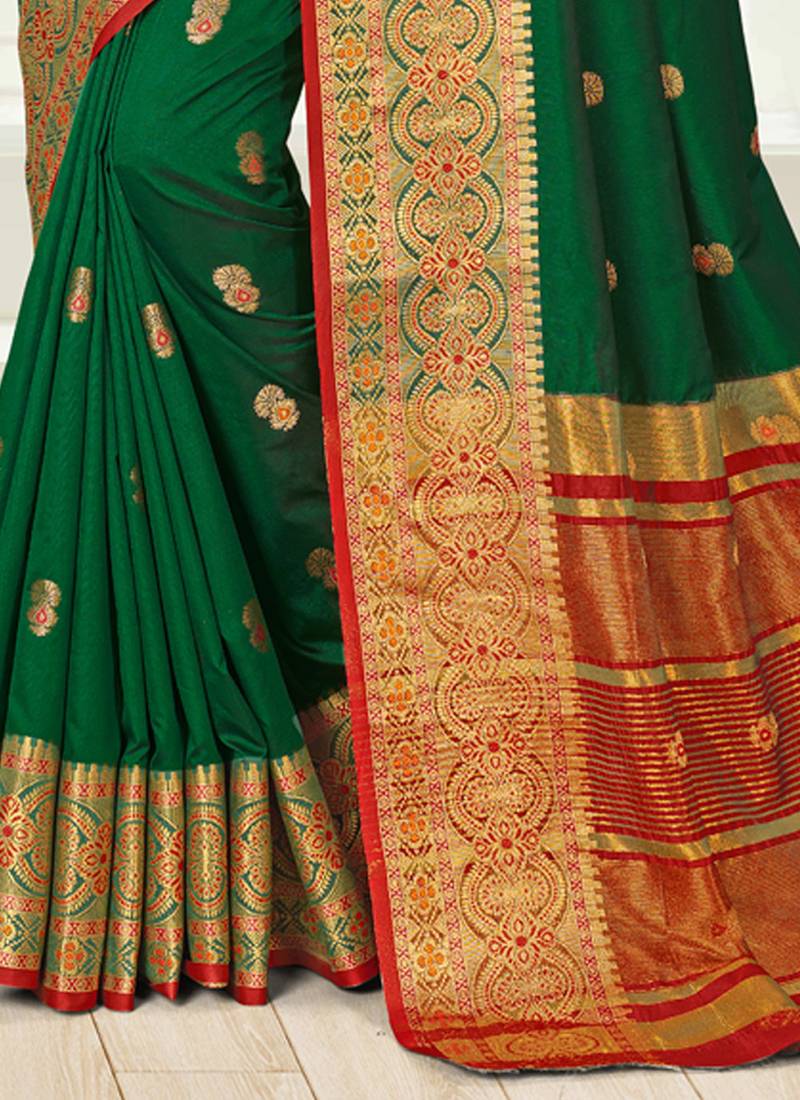 | Product Name | Dark Green Woven Silk Saree With Blouse | |