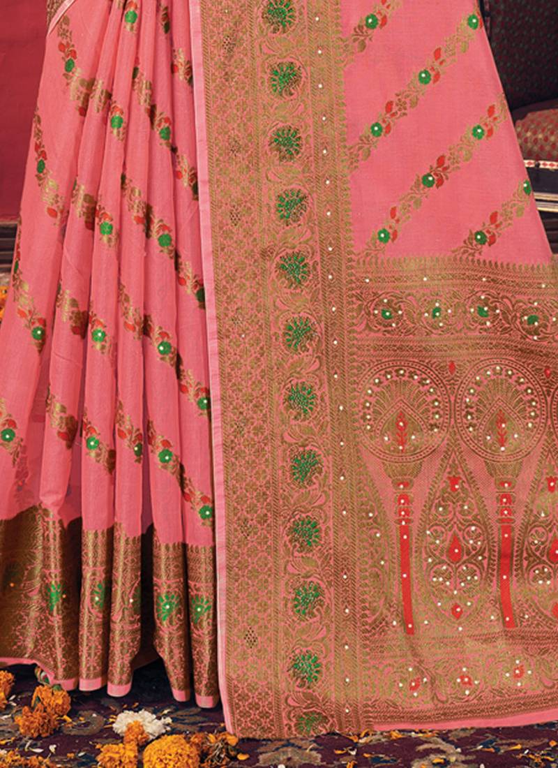 | Product Name | Pink Woven Cotton Saree With Blouse | |