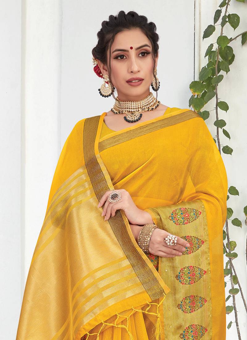 | • | Saree | : | Color- Yellow / Fabric- Organza |