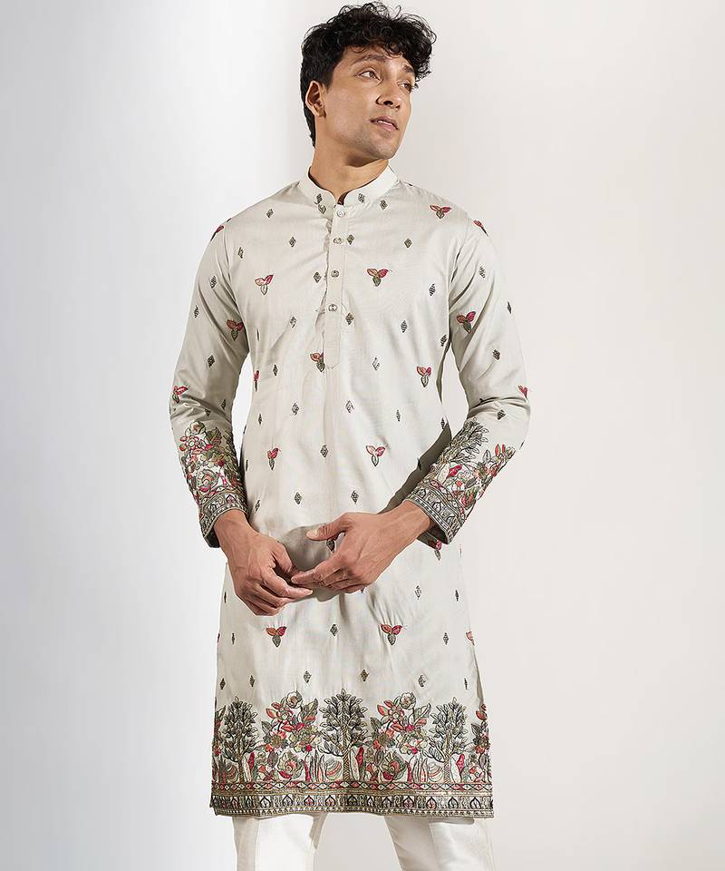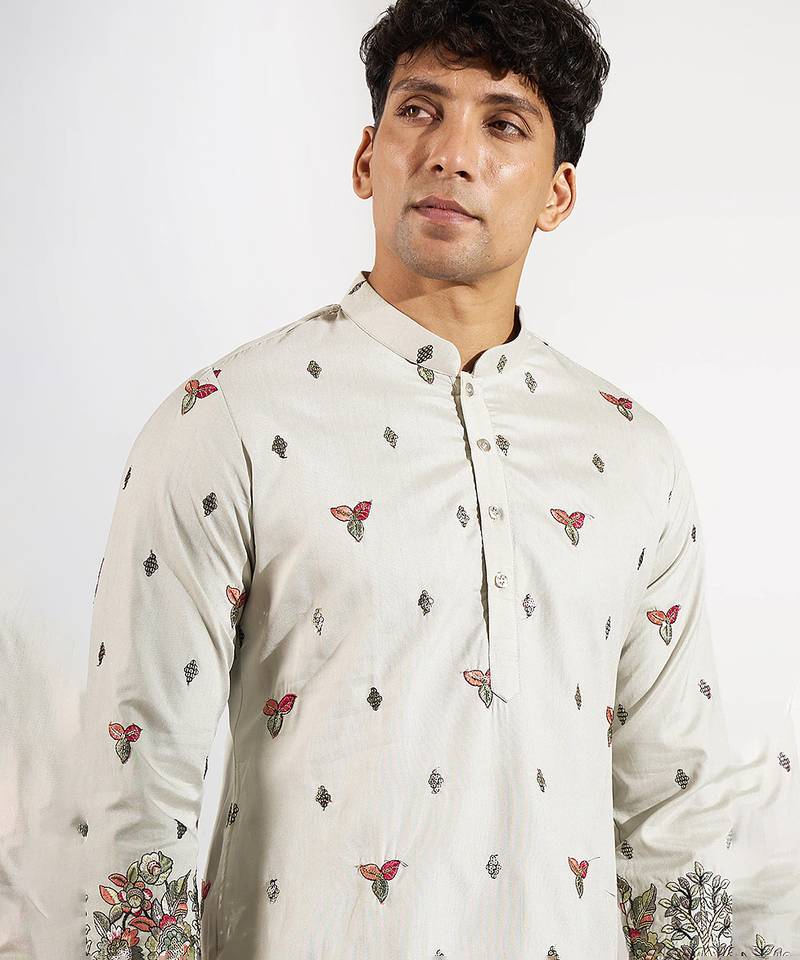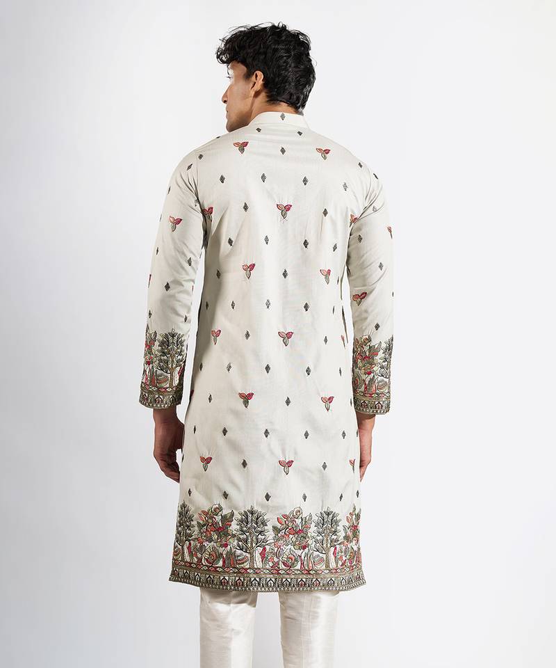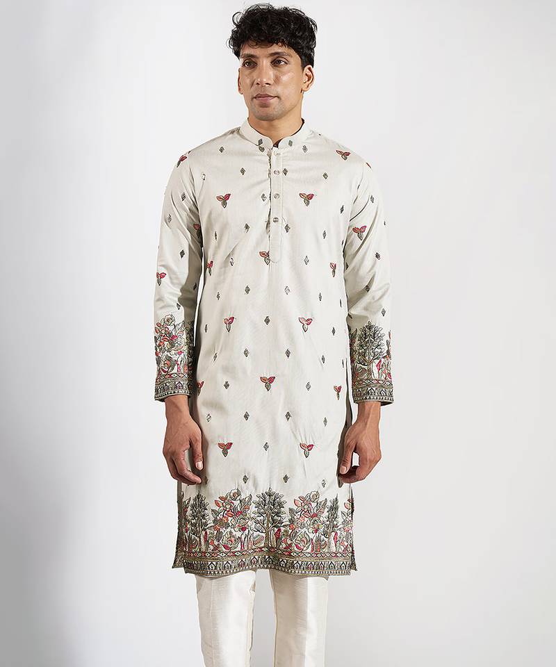 This Green Embroidered Silk Kurta Pajama Radiates Festive Elegance And Vibrant Charm. Crafted From Luxurious Silk, It Features Intricate Multicolor Embroidery That Enhances Its Sophisticated Appeal. The Tailored Kurta Paired With A Classic Pajama Offers A Graceful Silhouette, Making It Perfect For Weddings, Cultural Celebrations, Or Special Festive Occasions.