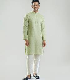 This Green Embroidered Silk Kurta Pajama Radiates Festive Elegance And Vibrant Charm. Crafted From Luxurious Silk, It Features Intricate Multicolor Embroidery That Enhances Its Sophisticated Appeal. The Tailored Kurta Paired With A Classic Pajama Offers A Graceful Silhouette, Making It Perfect For Weddings, Cultural Celebrations, Or Special Festive Occasions.