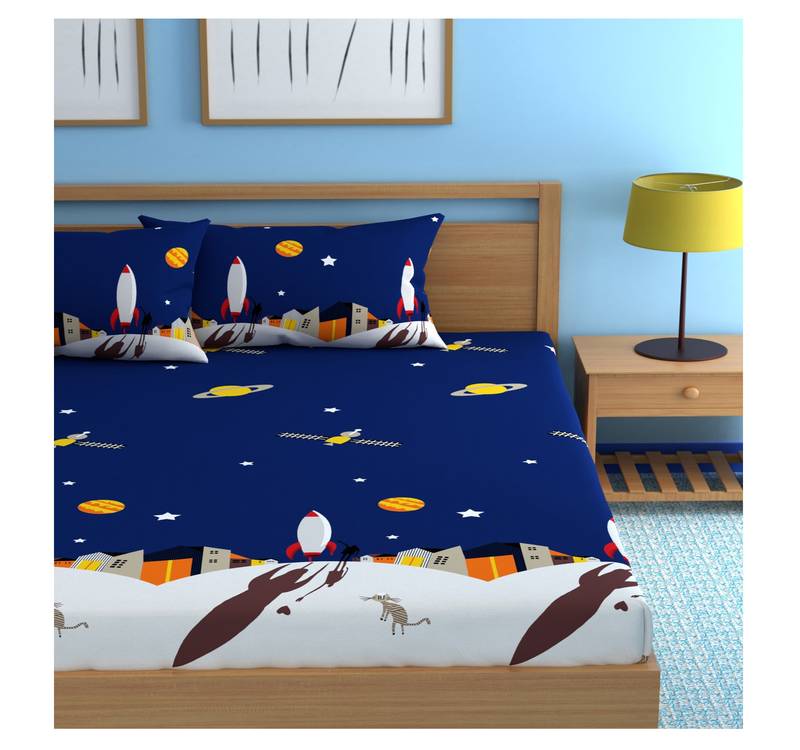 Fitted bedsheet size king all round elastic with 2 pillow covers - fit upto 8 inches mattress