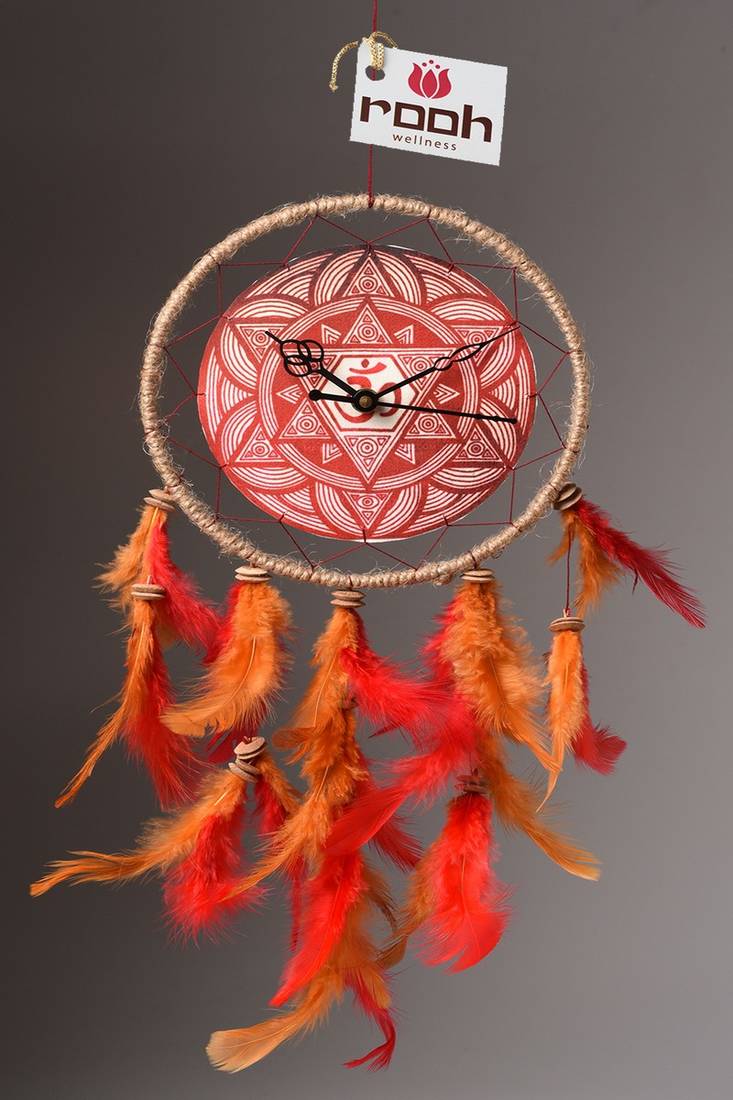 Rooh dream catcher om maroon dream catcher clock handmade hangings for home decor, bedroom, meditation room.