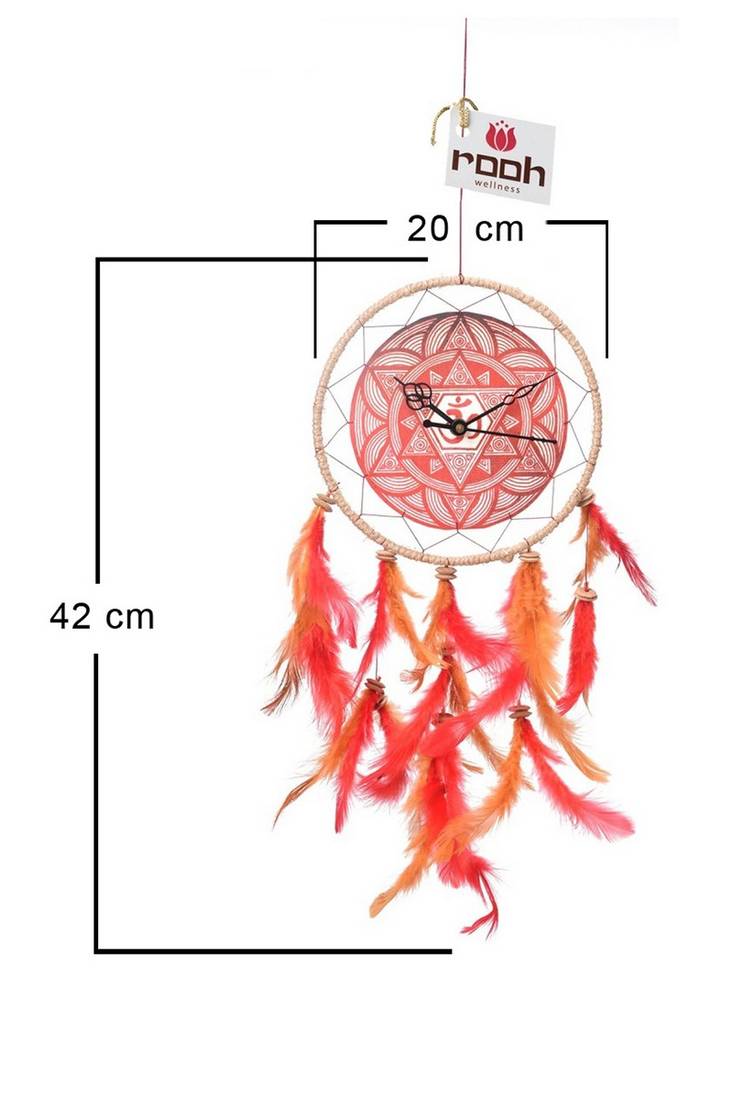 Rooh Dream Catcher Om Maroon Dream Catcher Clock Handmade Hangings For Home Decor, Bedroom, Meditation Room.
